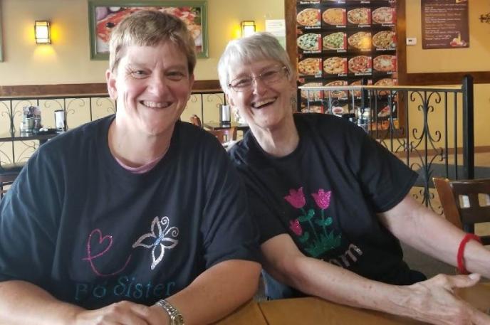 Sue (left) with her mother, Terry (right).