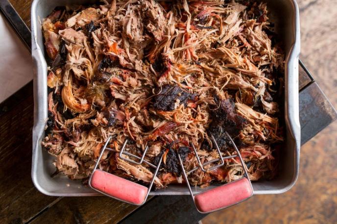 The meat must be pork (whole hog, shoulder, or occasionally ham).