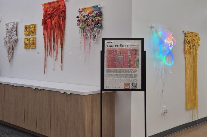 While Lauren’s art is on display through June 6th, she will also host two artists’ talks. The first, on March 21st, will be Woven Narratives: A Decade in the Making - Fiber Art, Design Process, and Storytelling. The second, on May 16th, will be From Passion to Practice: Weaving Stories into Design - Turning Creativity into Opportunity. Both events are currently open for registration online. https://cmlibrary.bibliocommons.com/v2/events?q=Lauren%20Stern