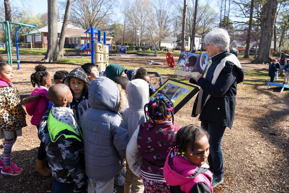 Storywalk is a collaboration between the Charlotte Mecklenburg Library, Mecklenburg County - Parks and Recreation, Pineville Parks and Recreation, Town of Matthews Parks, Recreation & Cultural Resource and Read Charlotte. Storywalk® is supported by grant funds from the Institute of Museum and Library Services under the provisions of the federal Library Services and Technology Act as administered by the State Library of North Carolina, a division of the Department of Natural and Cultural Resources.